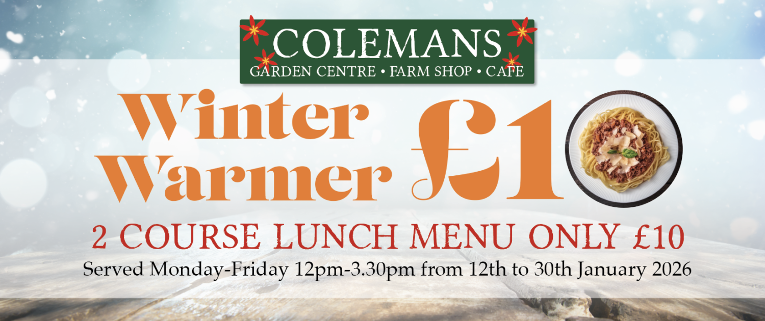 Beat the January blues with these Winters Warmers in the Coleman’s cafe available from 12th to the 30th January, Monday to Friday from 12 noon to 3.30pm treat yourself, family and friends and tuck in… 2 courses for only £10.